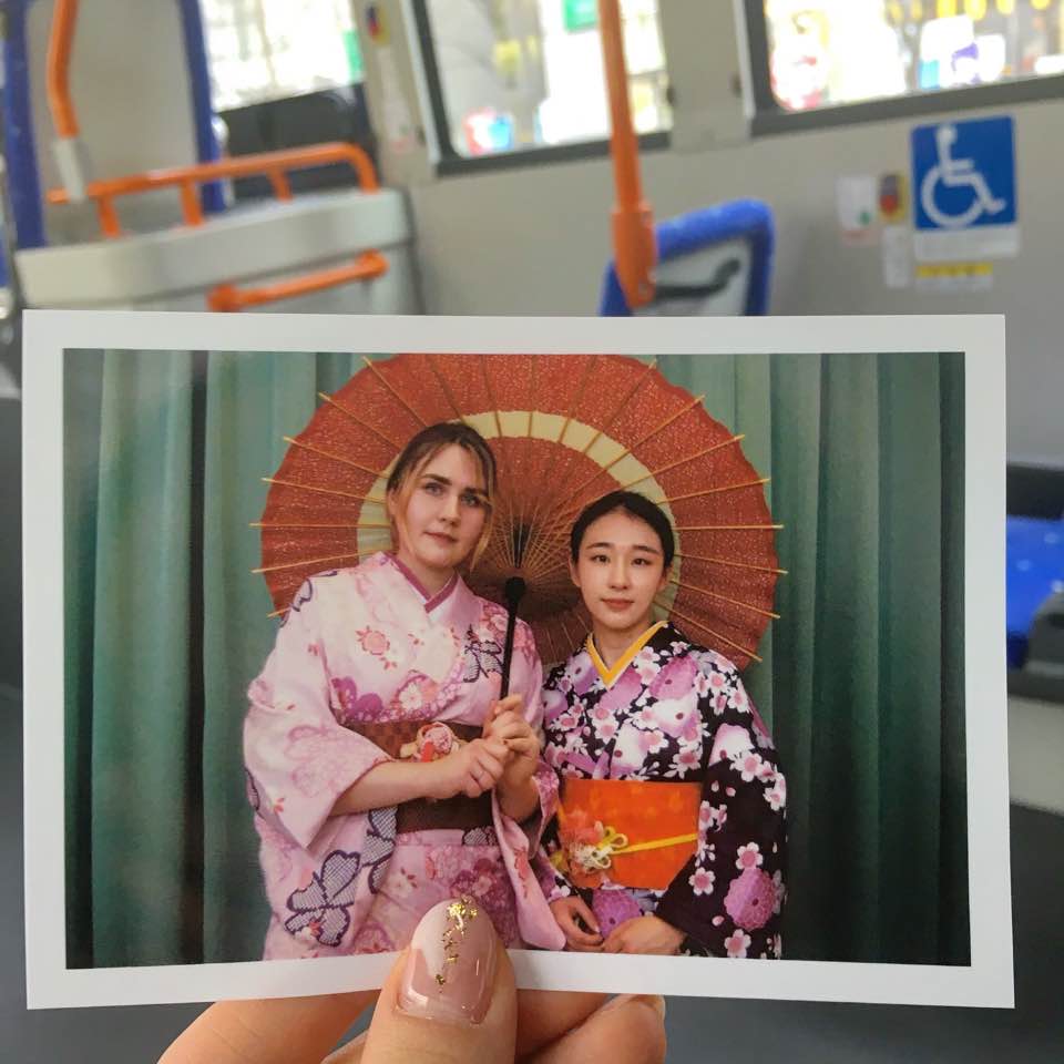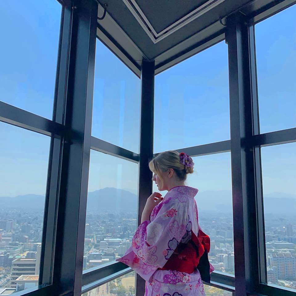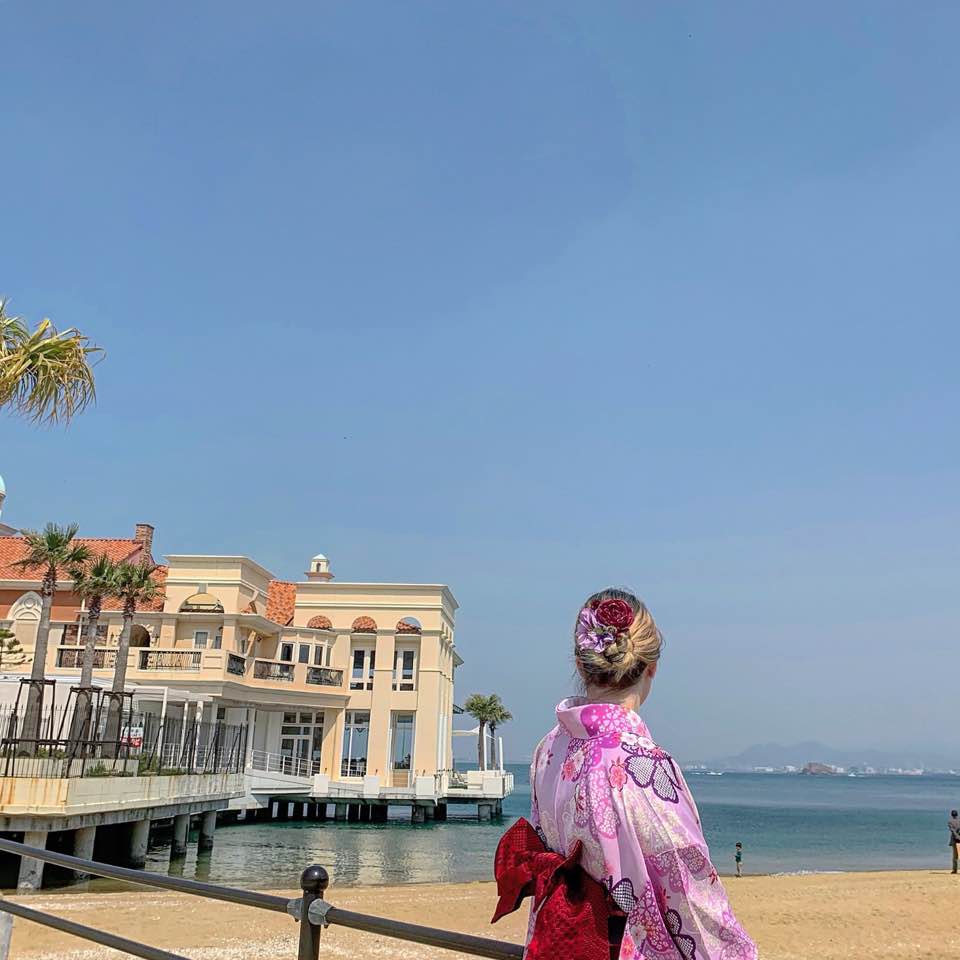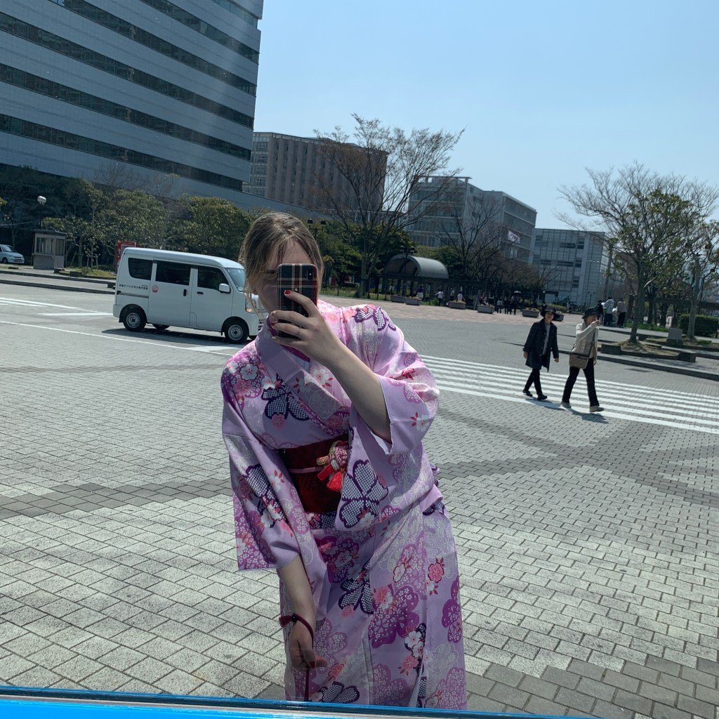 The next morning we had only little time till our bus, so we decided to go to the Fukuoka tower and visit the beach. It was a good decision since it was breathtakingly beautiful. They were renting Kimonos (Japanese traditional clothing) in the tower so we jumped at the opportunity to try them on and once again took tons of pictures!