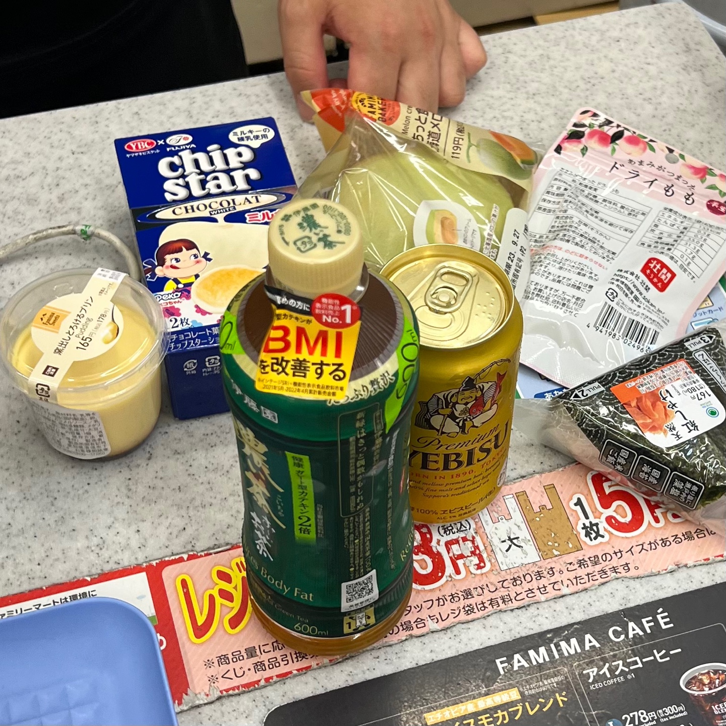By the time we got to the hotel, we were exhausted, completely drained, and starving. So, we decided to keep things simple and just grab some dinner and a beer at the nearest bar we could find. Before heading out, we had asked the receptionist if she could recommend a cozy, local spot with good food, and we were so glad we took her advice. The meal was absolutely delicious, and the prices were surprisingly reasonable—especially since Japan can get pretty expensive. After our satisfying meal, we couldn’t resist making one last stop at a convenience store on the way back to the hotel, because, well, when in Japan…