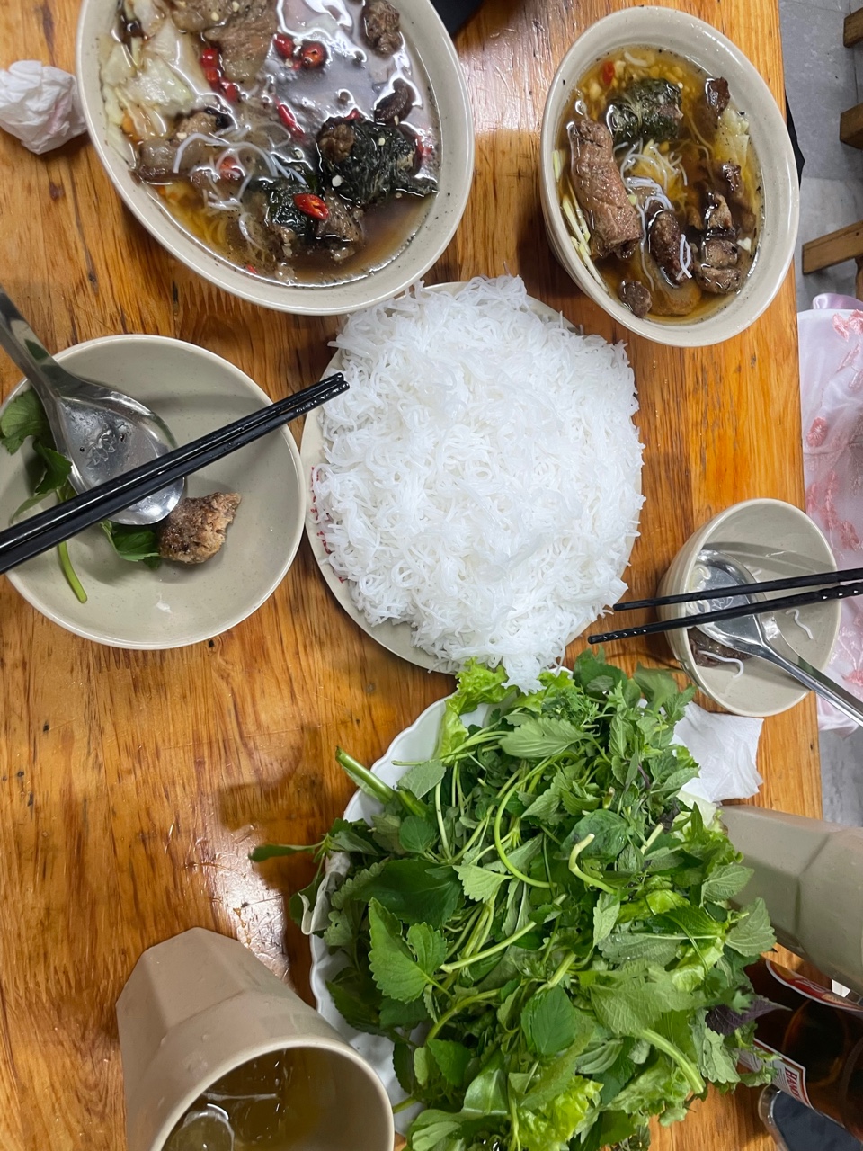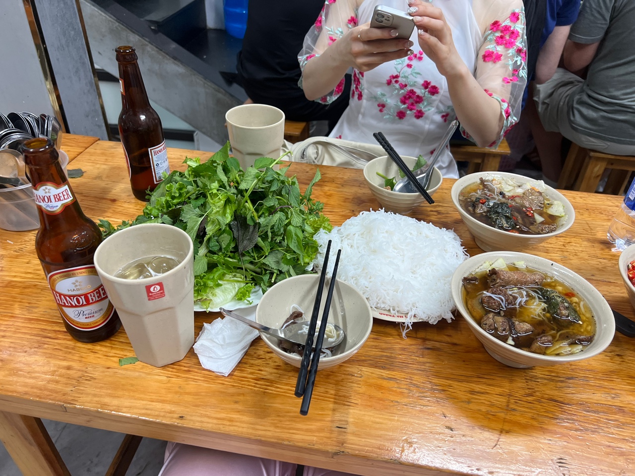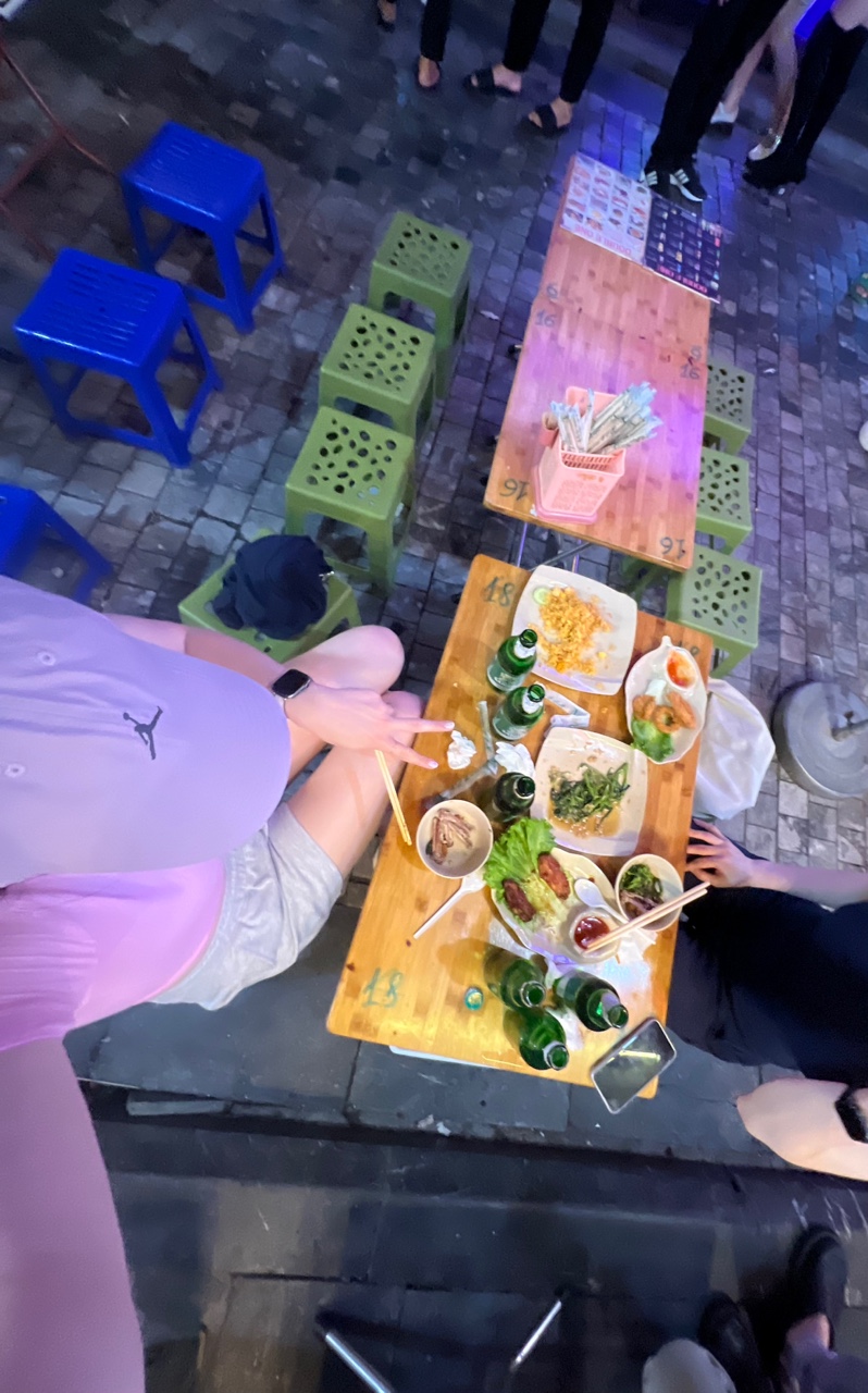 With all the excitement of our journey, we boarded the plane and arrived in Hanoi just a few hours later. It was already quite late by the time we landed, so we hopped in a cab and headed straight to our hotel. But of course, no adventure truly begins without a midnight snack, right? Craving something local, we ventured out into the quiet, lantern-lit streets—and we struck gold. We found a cozy little spot serving pho, the iconic Vietnamese noodle soup. Made with a deeply flavorful broth, silky rice noodles, fresh herbs, and your choice of tender beef (pho bo) or chicken (pho ga), it was everything we needed and more. Light yet satisfying, it hit the spot perfectly after a long day of travel.Of course, we didn’t stop there. We also indulged in some classic Vietnamese bites like crispy spring rolls and juicy slices of fresh mango—because when in Hanoi, why not start your culinary journey right away?