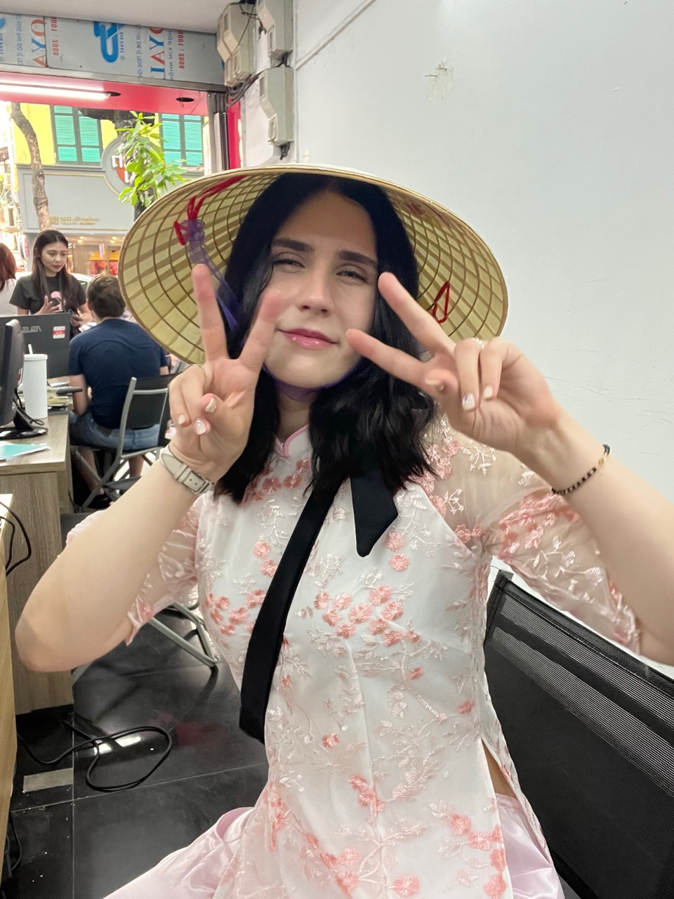 On our first day in Vietnam, we went on a motorcycle tour, and it was an absolute blast! It was actually my first time ever riding a motorcycle, which added to the thrill. Before we hit the road, we decided to do something super touristy and bought traditional Vietnamese costumes (ao dai), which was a lot of fun and definitely a cool experience.