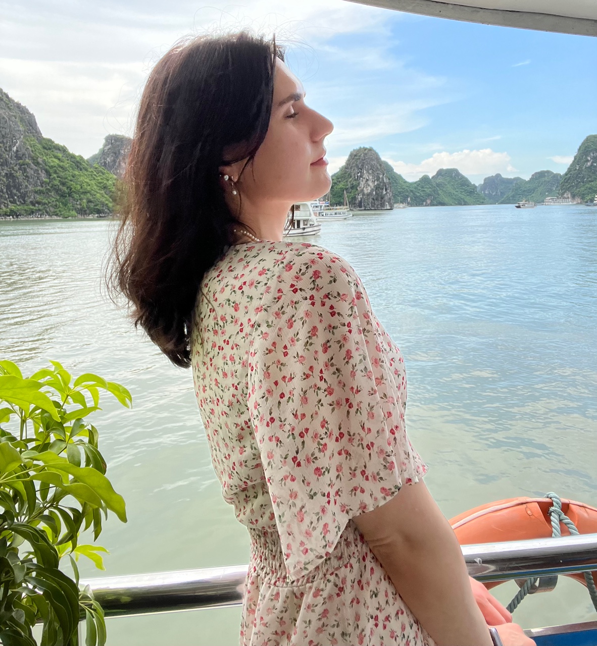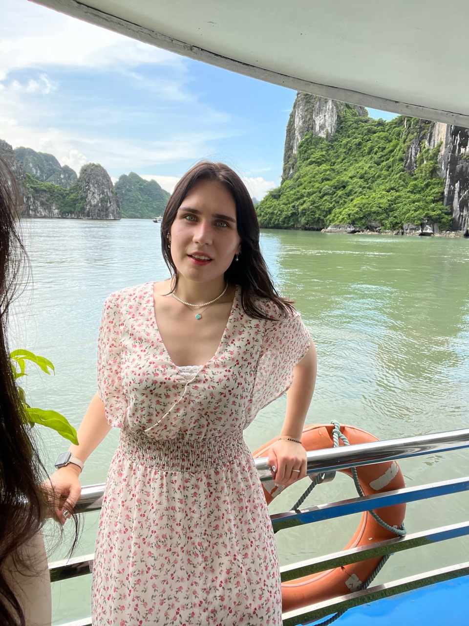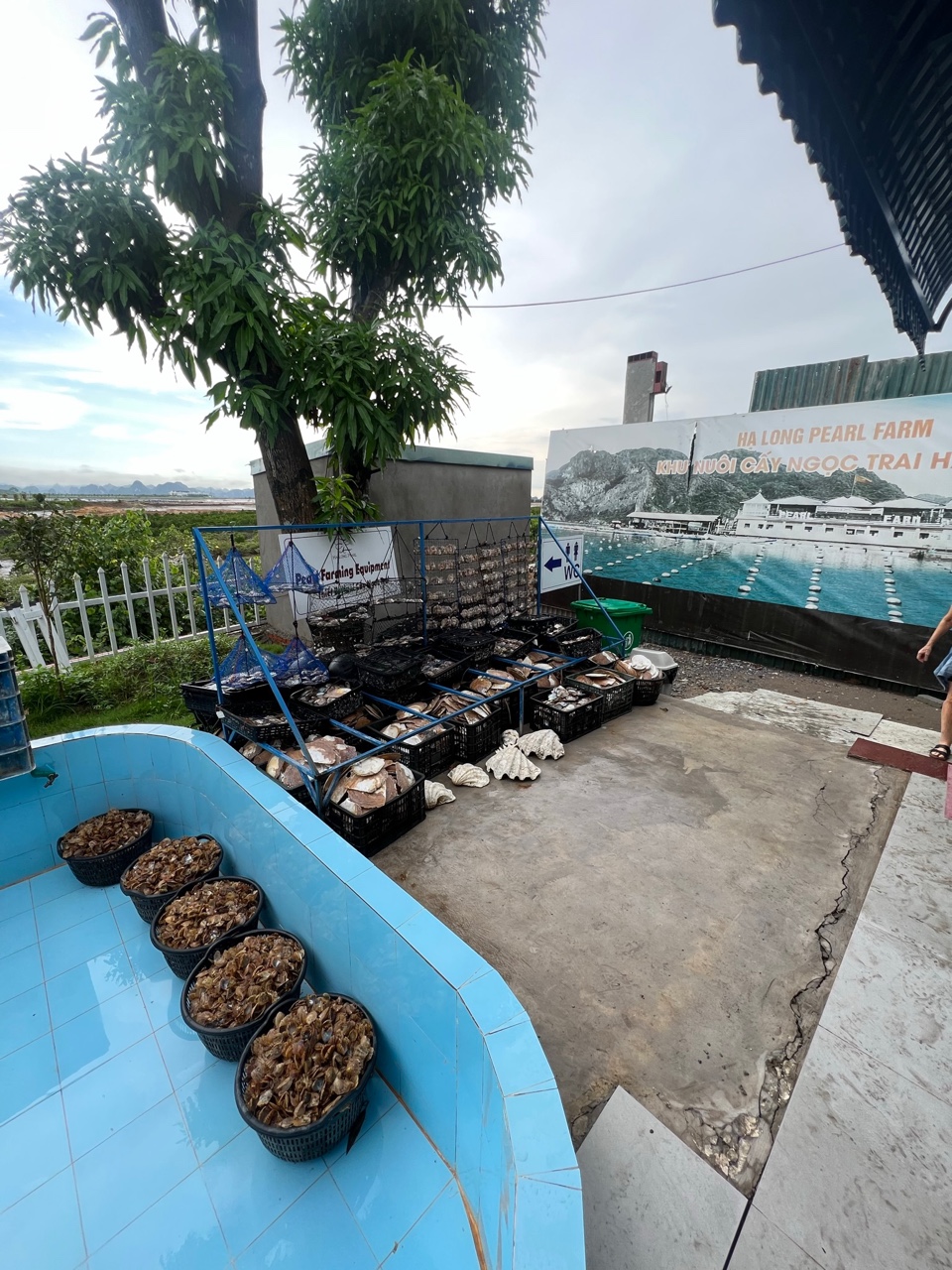 The next morning, Jyuni and I set off on our much-anticipated Ha Long Bay tour. We had pre-booked a boat tour, so everything was smooth and easy from the start. As we left Hanoi behind, the scenery quickly turned lush and green—Vietnam’s countryside in all its peaceful beauty. On the way to the bay, we made a quick but fascinating stop at a pearl farm, where we got to see how pearls are cultivated and harvested. It was such a unique experience, and definitely not something we expected!